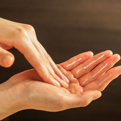 Versez quelques gouttes d’huile démaquillante dans le creux de votre main sèche. Réchauffez légèrement la matière entre vos paumes.